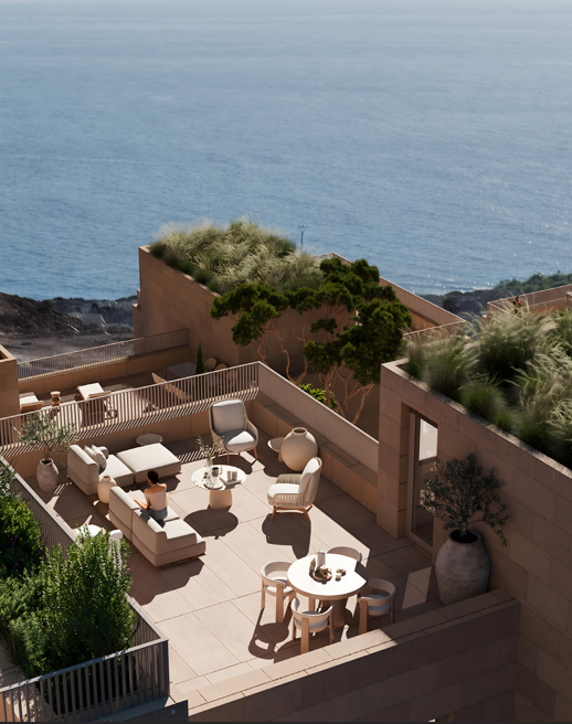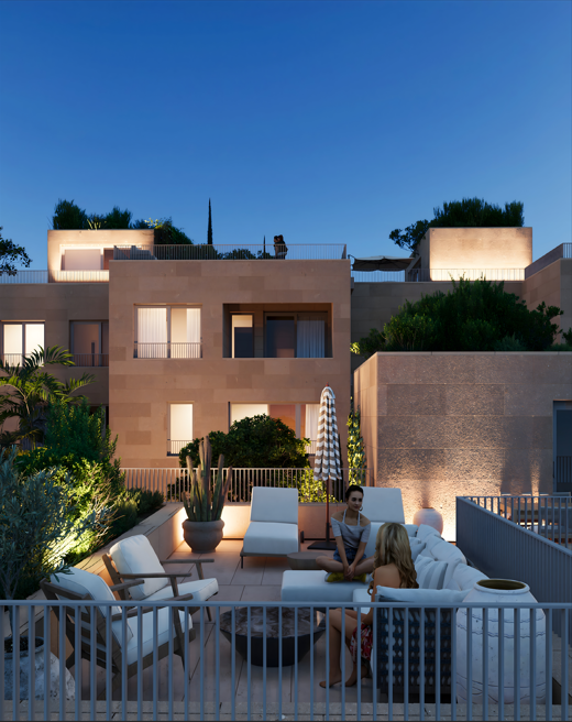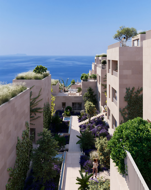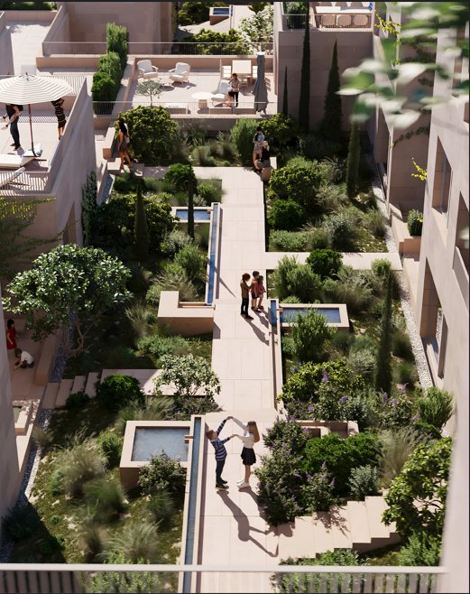 Beyond aesthetics, the design of Delta Gardens embraces smart environmental strategies —trees and buildings work together to provide shade, water features circulate harvested rainwater for natural cooling, and carefully planned ventilation allows air to flow freely through the courtyards. The result is a naturally comfortable environment that celebrates light, air, and life by the sea.